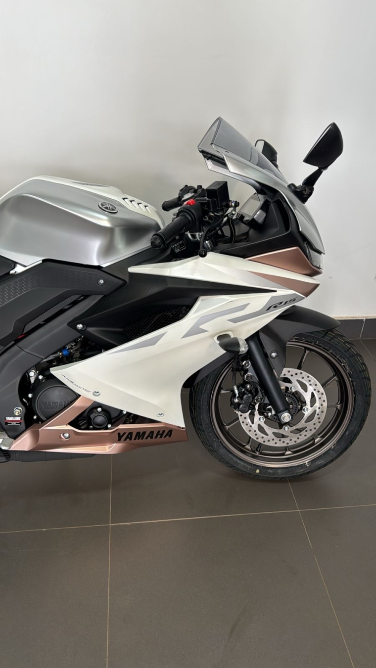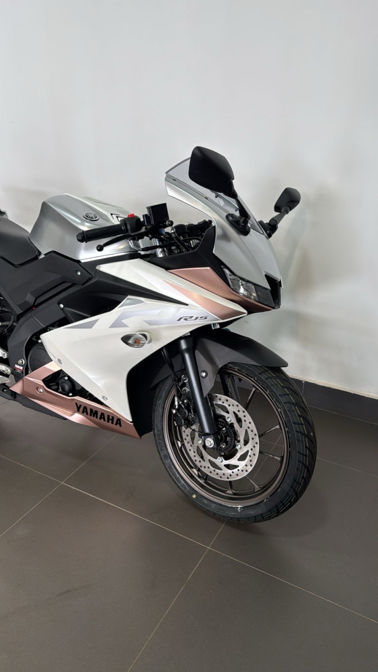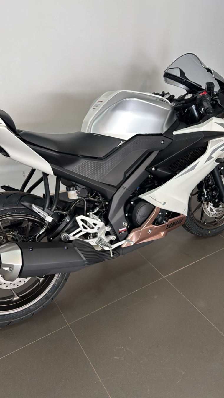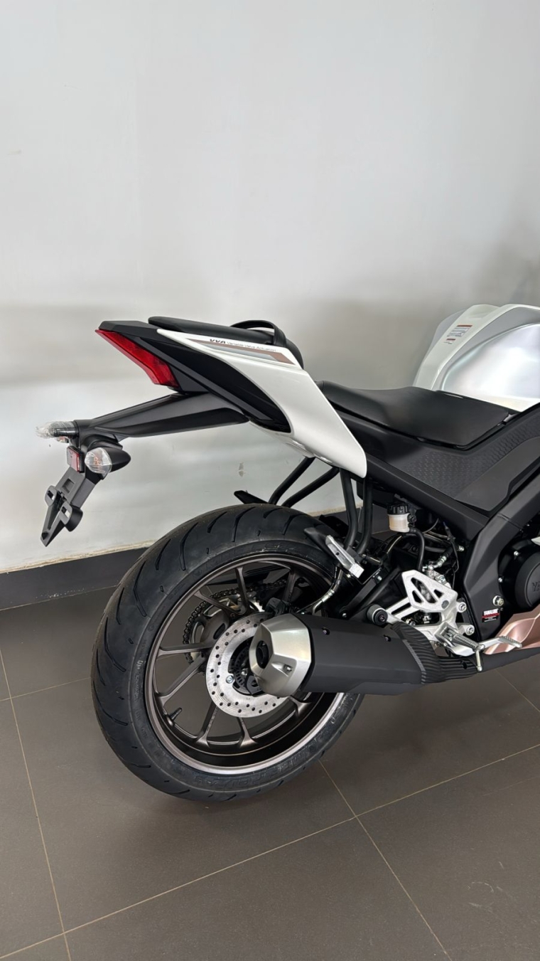 Oferta válida para YZF-R15 à vista, ano/modelo 26/26, na cor Branca metálica, Chassi: T0021261, até o dia 30/04/2026 ou enquanto durar o estoque. Imagem meramente ilustrativa.