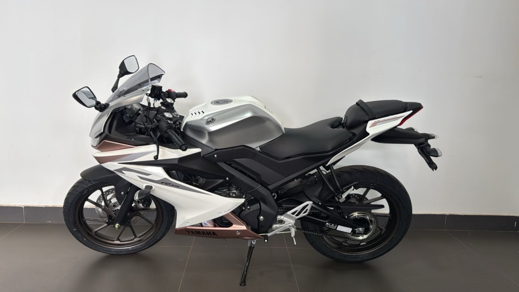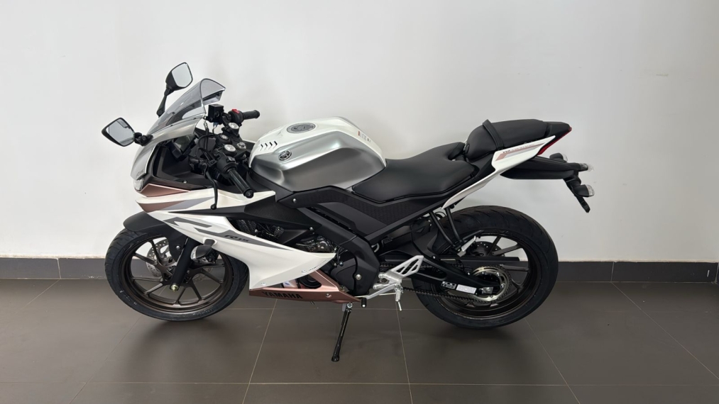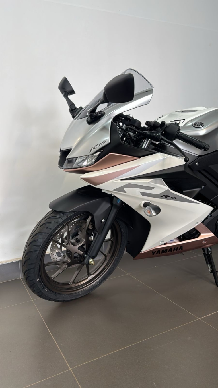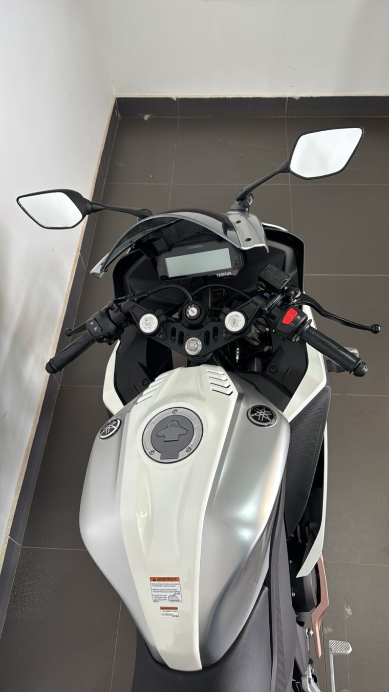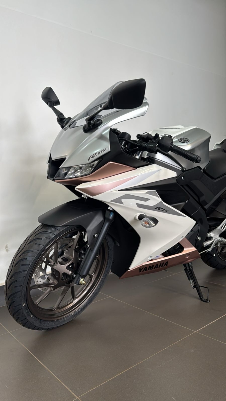 Oferta válida para YZF-R15 à vista, ano/modelo 26/26, na cor Branca metálica, Chassi: T0021261, até o dia 30/04/2026 ou enquanto durar o estoque. Imagem meramente ilustrativa.
